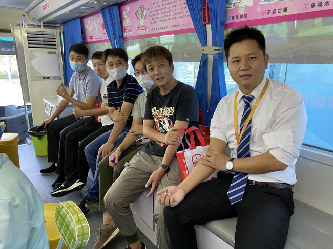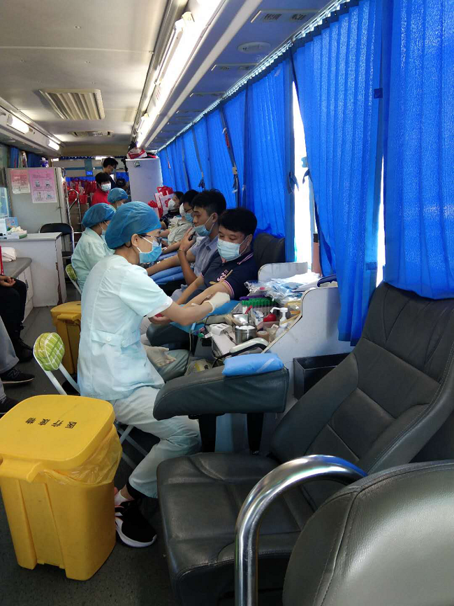 在金灣區(qū)市民服務(wù)中心A2棟一樓大廳,大家在工作人員的指引下,依次進(jìn)行登記填表、測量血壓、抽血化驗(yàn)等,整個流程有條不紊。 順利通過檢查的同志們在市血站的獻(xiàn)血車上自豪地卷起袖子,奉獻(xiàn)出自己的一份愛心。
