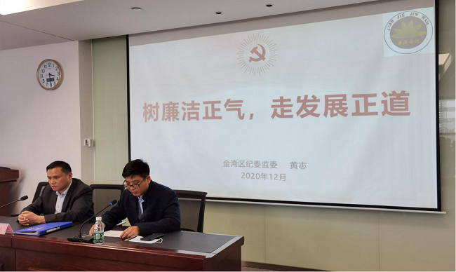為筑牢廉潔思想防線,壓實(shí)“一崗雙責(zé)”,12月2日,聯(lián)港公司黨支部特邀請(qǐng)區(qū)紀(jì)委副書(shū)記、監(jiān)委副主任黃志為公司領(lǐng)導(dǎo)干部及全體黨員進(jìn)行了廉政警示教育專題講座。