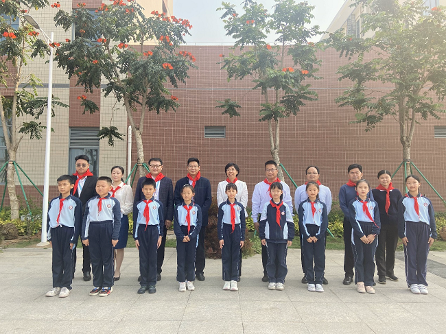 虹暉小學(xué)李亞男副校長(zhǎng)致歡迎辭。她代表學(xué)校歡迎聯(lián)港公司領(lǐng)導(dǎo)蒞臨,并感謝公司為學(xué)校綠化美化校園所捐贈(zèng)了紅楓樹(shù)和植樹(shù)工具,此舉彰顯了國(guó)企風(fēng)范和社會(huì)責(zé)任感。