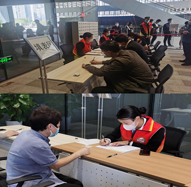 在發(fā)布大廳疫苗接種現(xiàn)場(chǎng),醫(yī)護(hù)人員一早已經(jīng)到位,市民服務(wù)中心各進(jìn)駐單位人員陸續(xù)來(lái)到現(xiàn)場(chǎng)排隊(duì)等候接種第三針疫苗。工作人員主動(dòng)靠前,設(shè)置愛(ài)心志愿服務(wù)崗,認(rèn)真、負(fù)責(zé)的開(kāi)展咨詢指導(dǎo)、健康碼查驗(yàn)、測(cè)量體溫、信息登記、秩序現(xiàn)場(chǎng)維持和表格填寫(xiě)等志愿服務(wù),同時(shí)協(xié)助醫(yī)護(hù)人員核對(duì)接種疫苗信息,引導(dǎo)接種群眾將棉簽等醫(yī)療廢品放在固定醫(yī)療廢品垃圾桶,配合疫苗接種工作有序、順利、高效的開(kāi)展。