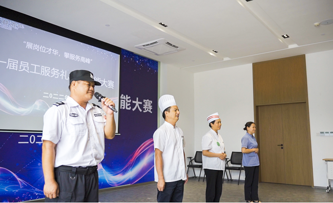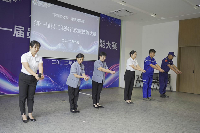 客服技能展示以賓客引導(dǎo)、員工坐姿、站姿、倒水等內(nèi)容展開角逐,展現(xiàn)出了服務(wù)優(yōu)秀的客服應(yīng)有的才能。