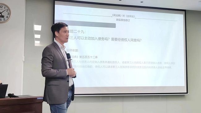 北京大成(珠海)律師事務(wù)所高級(jí)合伙人薛鵬律師以《民法典下合同實(shí)務(wù)研究》為主題貫穿培訓(xùn)課程,通過(guò)三十個(gè)常見(jiàn)的實(shí)務(wù)案例問(wèn)題,詳細(xì)解讀了《民法典》對(duì)合同編作出的實(shí)質(zhì)性修改內(nèi)容,進(jìn)一步強(qiáng)調(diào)合同訂立、履行、變更、解除等管理工作重要性。參訓(xùn)人員積極互動(dòng)交流,提出實(shí)操過(guò)程中合同履約、風(fēng)險(xiǎn)控制等方面的疑問(wèn),切實(shí)化解工作中的難題。